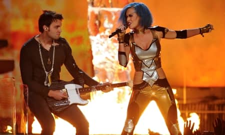 If you've ever wondered who is the guy rocking the guitar in Katy Perry's shows, then you're in luck; he is Casey Hooper. He has done many shows alongside Katy.