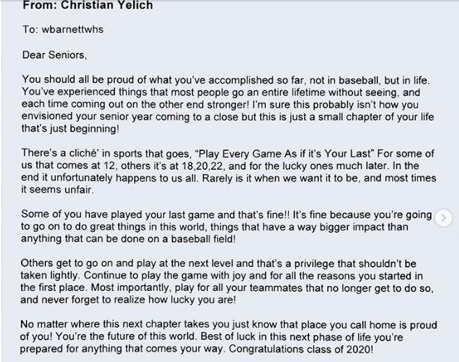 Moreover, Christian Yelich penned a letter of support to senior players at the high school alma mater. Owing to things much more critical than our games, baseball has been shut down around the nation and much of the globe. One community impacted, in particular, is high school seniors teams. Scroll down to know his Net worth.