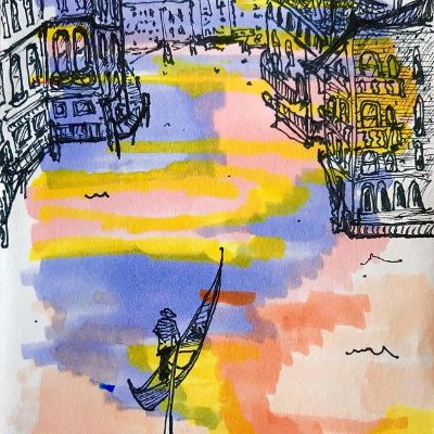 One of his sketch posts has the houses and buildings around while the river flows between them. And one man is seen on a boat on the river passing through the buildings. He has captioned the post "Sketchy".